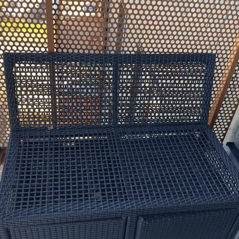 VidaXL utesoffa i svart konstrotting med tre sittdynor i mörk färg. Soffan är avsedd för utomhusbruk, till exempel på altan, balkong eller uteplats. Ram och flätad konstrotting ger ett vädertåligt och lättskött sittmöbel. Sitsen rymmer flera personer och har ryggstöd samt armstöd på ena sidan för ökad komfort.