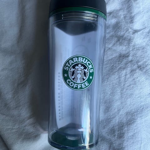 Kaffe termos använd med svarta smutsfläckar som ej verkar vilja gå bort. Passar för kaffe, te eller andra varma drycker att ta med på resan, till jobbet eller skolan. Står för frakten.