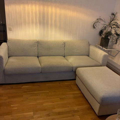 En mycket fin 2,5sits soffa med schäslong höger (sett framifrån) Ej nedsutten och är fläckfri
