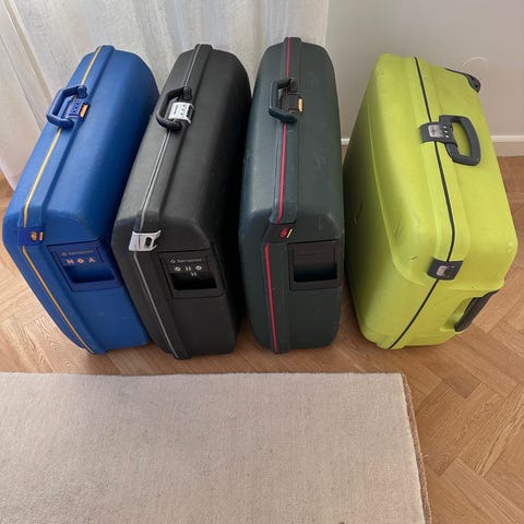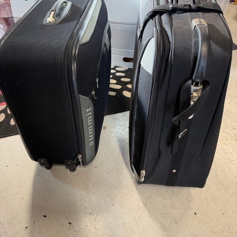Båda är av hårdplast och helt ok med hjul och handtag, inget som är sönder. En större och en lite mindre, enl bilderna. Hämtas i Barnarp/ Jönköping