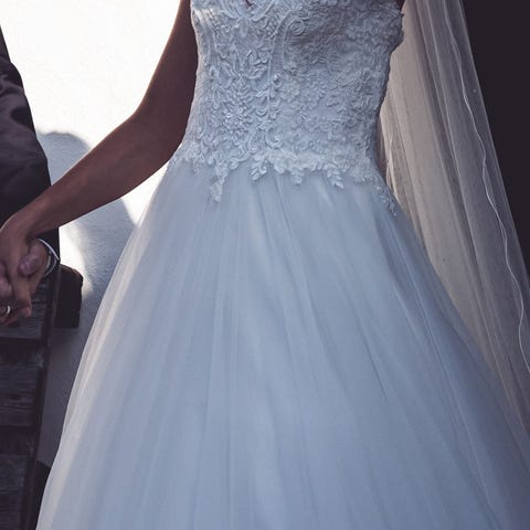 Brudklänning i vit färg i storlek XS (Storlek 34) från Modeca Collection.