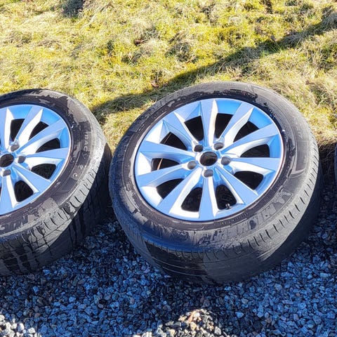 Säljer fyra snygga 16 tums aluminiumfälgar som suttit på en A4 2013. De är kompletta med centrumkåpor och distansringar som minskar centrumhålet till 57 mm vilket gör att de även passar på nyare Audi t.ex. A6 2021.