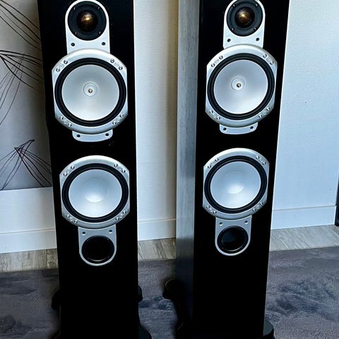 Säljer ett par Monitor Audio Bronze2 stativare i fint skick som inte används längre. Det enda gällande skicket som jag har sett är ett mindre märke i ena elementet(se bild) som syns om man står nära/är i fel ljus, men inget som påverkar ljudet eller funktionen.