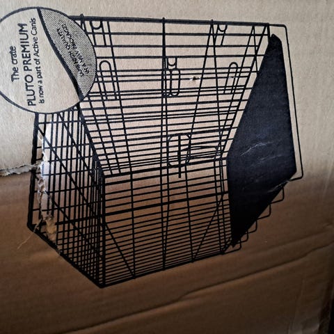 Cykelkorg med galler i vit flätad design. Korgen har ett svart metallgaller upptill som kan användas för att hålla innehållet på plats, till exempel husdjur eller packning. Passar montering på cykel och levereras med tillhörande fästanordningar enligt bilderna.