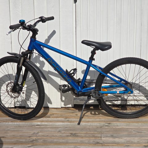 Det är en xc 275 trainer M/19" med blå färg samt 21 3x8 växlar. Den funkar och körs bra samt bra fjädring som e justerbar. Den ända felet är att vänstra växlarna är för lite spända men går att fixa om man skulle vilja. Men dom högra/ back växlarna fungerar fint och utan problem. Cykeln har förvarats inomhus mestadels av tiden.