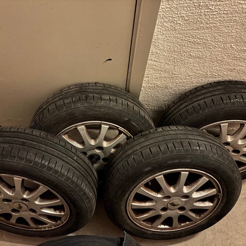 Vill bli av med mina gamla däck för min gamla toyota Corolla 2008 har en uppsättning med aluminium fälgar och friktionsdäck som bilderna visar. Har även un uppsättning med tre stycken däck på plåtfälg samma dimensioner.