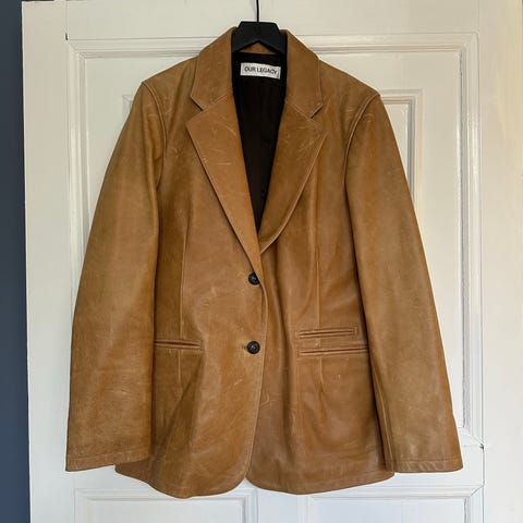 Brun vårjacka med knytskärp i fuskmocka.