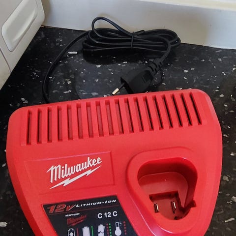 Milwaukee M12-18 FC batteriladdare i röd färg. Laddaren är avsedd för laddning av kompatibla Milwaukee M12- och M18-batterier. Utrustad med nätkabel för anslutning till vägguttag och ventilationsöppningar för kylning under laddning. Passar för användning tillsammans med elverktyg som använder Milwaukee M12- och M18-batterisystem.