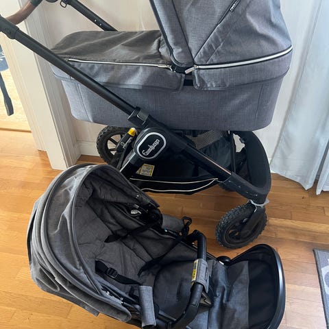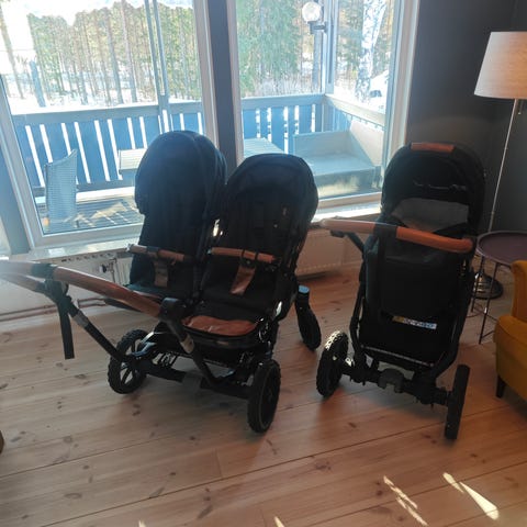 Medföljer även överdrag, myggnät samt väldigt varm sovpåse för mindre barn.