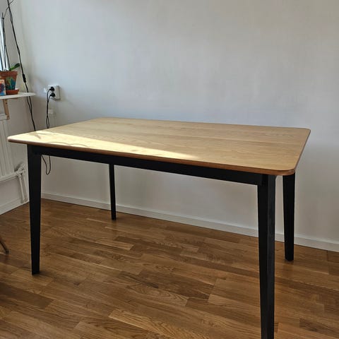 Säljer mitt matbord för 4 personer med träskiva och metallben. Bordet är i mycket bra skick och har inga större skador eller repor.