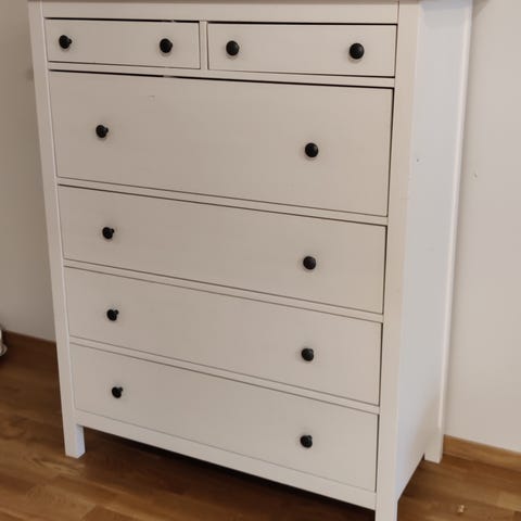 Säljer min vita byrå Hemnes från IKEA med tre lådor. Byrån är i mycket bra skick och har inga större skador eller repor.