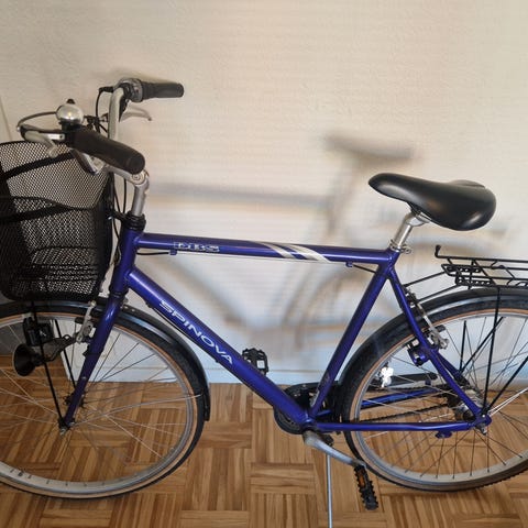 En svensktillverkad cykel (Trelleborg) Mustang City Avenue. 7-växlad Shimano. Aluminiumram. Dämpad framgaffel för bättre komfort. Fotbroms och handbroms. Ramlås med 2 st nycklar. Belysning fungerar. Size 55. Nära nyskick.