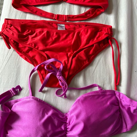 Shein bikini för dam i storlek S. Tvådelat set med trekants-bh och bikiniunderdel i gul färg. Material i polyester enligt tvättrådslappen. Överdel med knytband i nacke och rygg för justerbar passform. Underdel med smala sidor och fodrad insida. Levereras med originalpåse från Shein Swim enligt bild.Hämtas vid Jordbro station elle kan tas med till stan