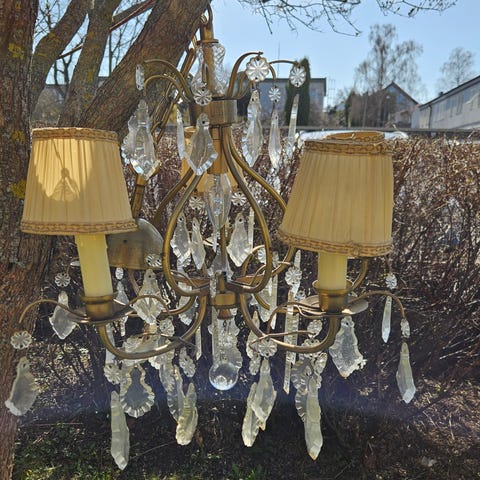 IKEA taklampa i form av en svart kristallkrona. Lampan har flera armar med hållare för ljuskällor och dekorativa svarta prismor samt några gröna detaljer. Avsedd för montering i tak och användning inomhus. Passar för standardlampor med gänga enligt IKEAs rekommendationer för denna typ av armatur.