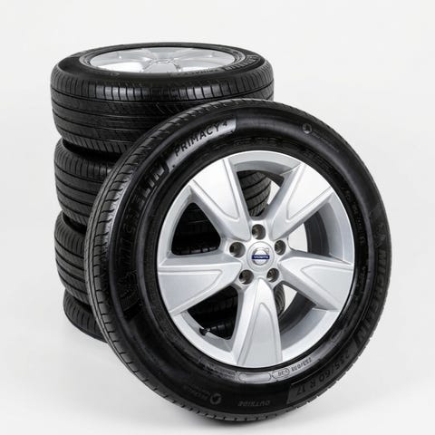 Jag säljer original Volvo fälgar med nästan nya sommardäck 235/55/18 Michelin däck Bultmönster 5/108 Navhål 63.4 ET50.5