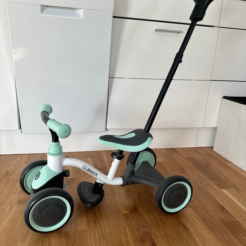 Trehjuling från Globber med ett avtagbart solskydd. Den har en 4-i-1 design. Perfekt för fartfyllda äventyr.