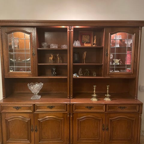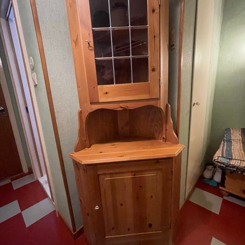 Fin skåp med hyllor och hörnskåp medföljer