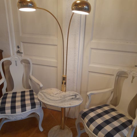 Säljer min golvlampa med måtten (se bild). Lampan köptes ny för ca 6000:- + ljuskällor. Unik lampa som inte många andra har. Kommer inte ihåg märket men kan säkert leta fram från något kvitto om det så önskas.