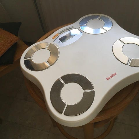 Våg för att mäta muskelmassa, metabolisk ålder, fettprocent med mera. Löstagbart handtag. Manual medföljer.