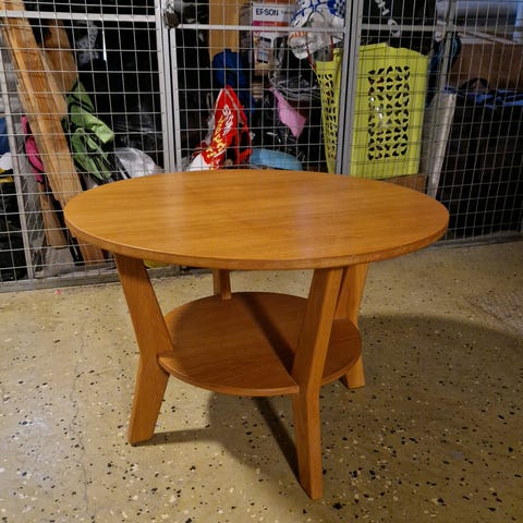 Soffbord med egengjord glasskiva. Går att köpa bara underredet då glaset börjat lossna