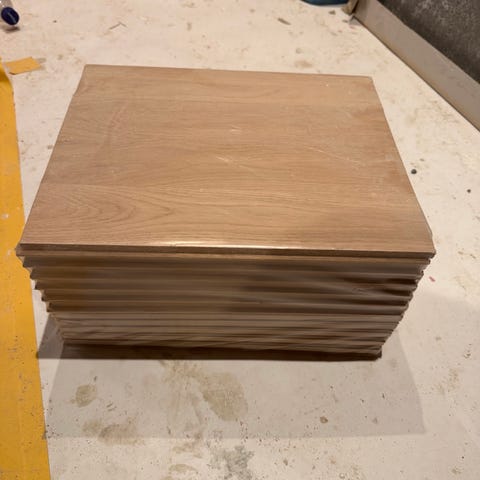 Behöver ca. 20m/2 av stav fiskbensparkett, massiv ek, dimensioner; 380X45.