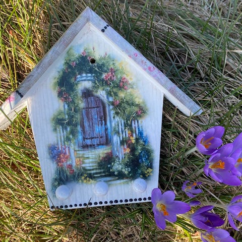 Nyckelformad väggkrok i metall med kedja