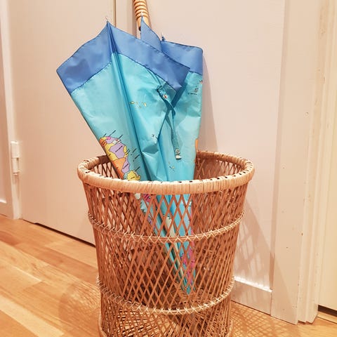 Strykbord med en ljusblå yta och vita ben mått:60x48x16. Benen är korsade för stabilitet och kan fällas ihop för enkel förvaring. Strykbordet är lämpligt för strykning av kläder och textilier.