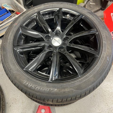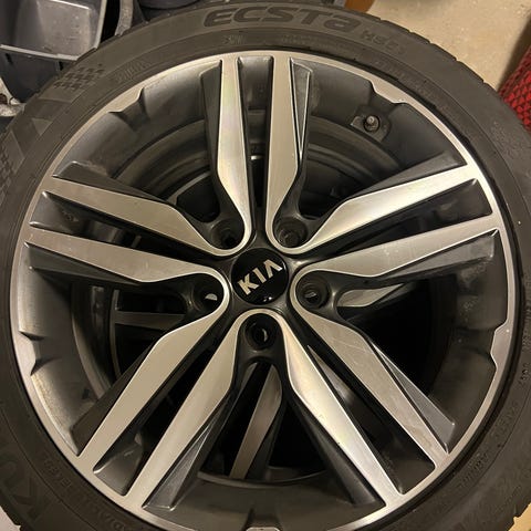 Hjulen har suttit på en Kia Sportage och passar även andra bilar med bultmönster 5/114.3, ET45 och centrumhål 73.1. Exempelvis Hyundai Tucson/Santa Fe/Ioniq 5, Kia Sorento/EV6/Niro, Mazda CX-5/CX-60 och Mitsubishi Outlander. Kontrollera alltid måtten mot din egen bil innan köp.