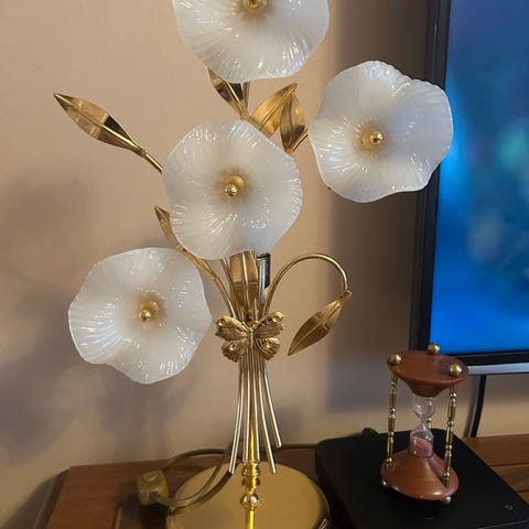 Superfin mässing lampfot och dusty pink lampskärm (lampskärm inköpt på Drömhuset).