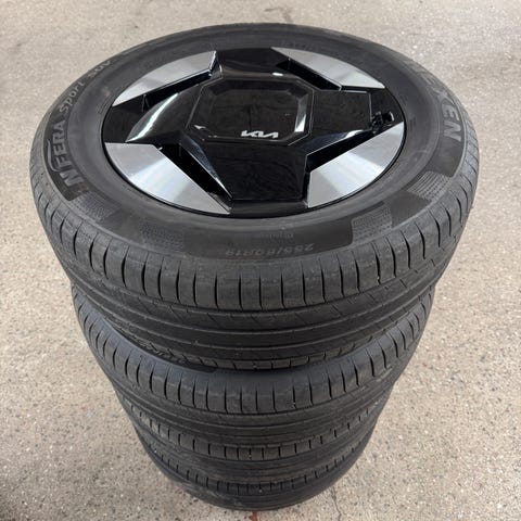 Säljer mina originalfälgar och är i bra skick som jag har haft på min EV6. Vinterdäck sitter på men har gjort sitt. Dags att kränga på nya däck alltså. Antingen sommardäck eller vinterdäck. Fälgarna har rullat ca 3500 mil. Fälgarna är köpta av mig.