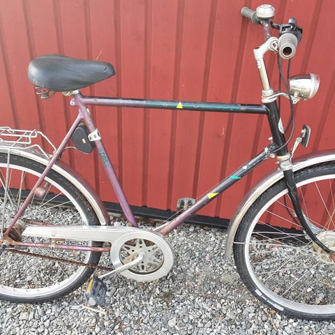 DBS -60-eller-70 tals Herrcykel originalskick,, tvåväxl bakåttramp växel,ingen växelvajer som fryser på vintern, ram stl 56 cm, 26" fälg, fotbroms, ganska fin lack, färg brunt, stålfälgar, stålskärmar, pakethållare stål, skedjeskydd aluminium , originallås och nyckel som inte fungerar och en nyckel, Norsk kvalitetscykel.