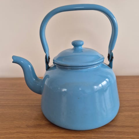 En härlig emaljerad tekanna (kaffekanna) med lock total höjd med loch 24 cm, utan lock 20cm från Kockums jernverk..
