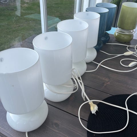 Diverse lampføtter i flera olika modeller formgivna av Gruppen omfattar bland annat en bordslampa med rund fot och mörk lampskärm samt flera högre lampfötter i metall och trä. Lamporna är avsedda för inomhusbruk och passar exempelvis på sängbord, sidobord eller fönsterbräda. Lampskärmar och ljuskällor kan behöva kompletteras beroende på modell och skick vid .