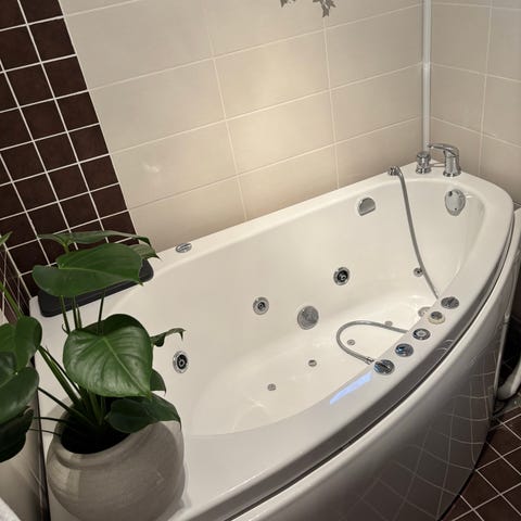 Fristående badkar med klassisk design och lejontassar. Badkaret är vitt och har rundade, höga kanter. Materialet är ett slätt, lättskött ytskikt som är enkelt att rengöra. Ca 150x70 (längd och bredd).