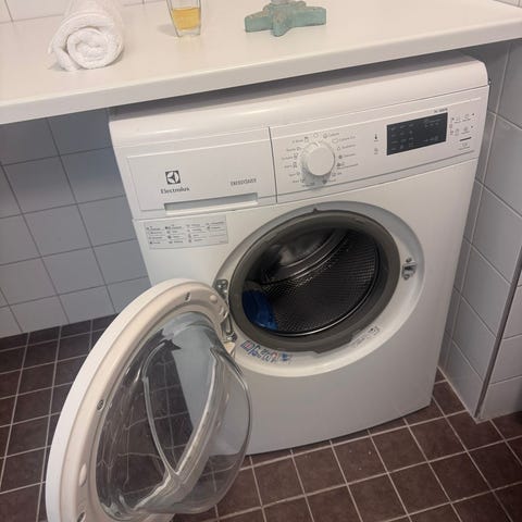 AEG frontmatad tvättmaskin i vit färg. Maskinen har frontmatad lucka med glasfönster och tydlig display med programval och inställningar på frontpanelen. Tvättmedelsfack finns upptill på vänster sida. Passar för installation i badrum eller tvättstuga med standard vatten- och avloppsanslutning. Maskinen är avsedd för hushållstvätt av kläder och textilier enligt angivna program på panelen.