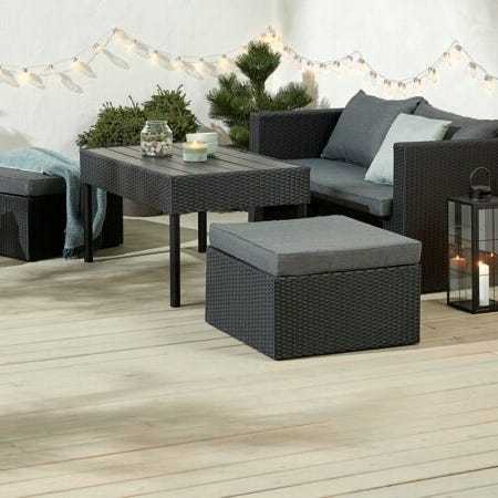 Utemöbel från JYSK, troligen modell Mora. Divandelen kan fästas på antingne höger eller vänstersida.