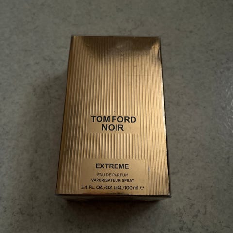 Tom Ford Noir Extreme parfym. Flaskan rymmer 100 ml (3,4 fl oz). Förpackningen består av en mörk glasflaska med guldlock och medföljande ytterkartong i guld. Passar som doft för vardag och fest.