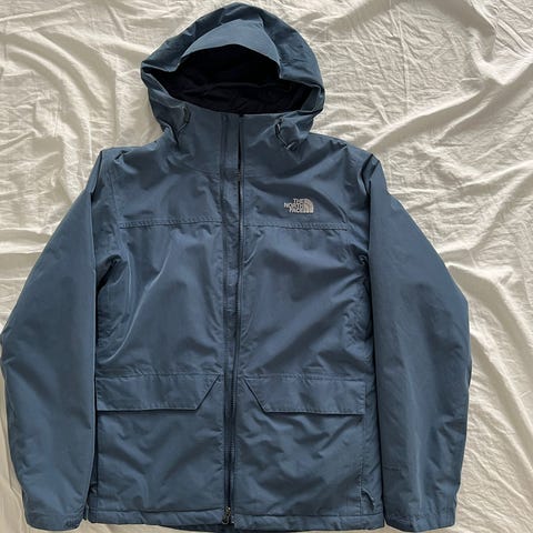 The North Face HyVent jacka för herr i storlek M. Jackan är svart och tillverkad i polyester. Utrustad med huva och hel dragkedja framtill. HyVent-materialet är utvecklat för att vara vind- och vattentåligt samtidigt som det släpper ut fukt. Passar som ytterjacka för vardag och utomhusaktiviteter i varierande väderförhållanden.