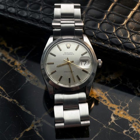 Rolex Oyster Perpetual Date, Ref 1500 Snr 3825869 Verknr D662804, Grå urtavla Dia 36 mm, Oysterlänk i stål, äkthets och värderingsintyg från Bergströms Ur, Malmö, Rolexbox och ytterkartong, inga övriga tillbehör