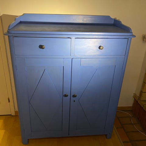 Antik söt byrå med många användningsområden, sideboard, smink & smycken, badrum mm. Utdragbar låda och skåp med två hyllplan. Hämtas på plats i Umeå.