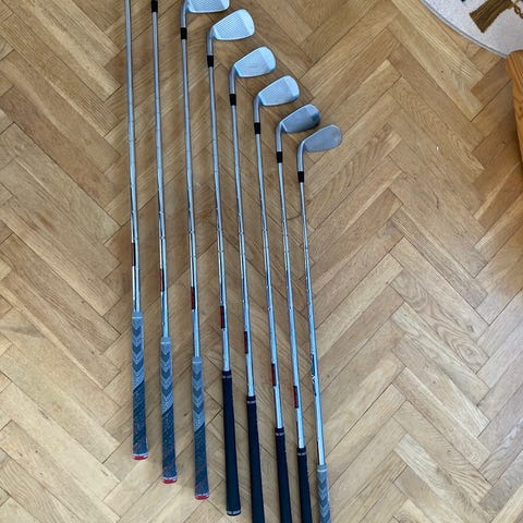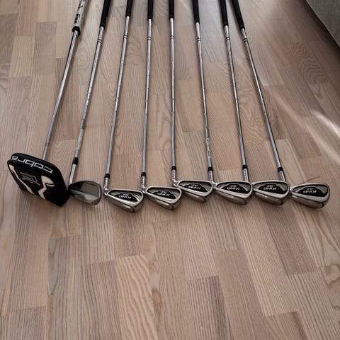 Nike järnklubbor golfset. Setet består av A,P,9,8,5 i Nike. Saknas tyvärr en järn 6a och järn 7a i Nike men det finns en Cobra 7a som följer med. Ett bra nybörjar set
