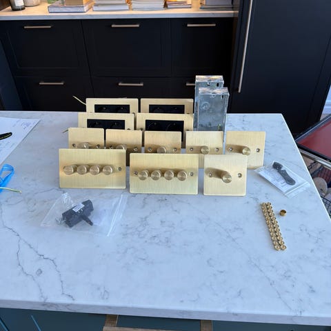 Buster & Punch väggströmbrytare 2-knapps i mässing med logo. De är nya men vissa har små diskreta repor. Finns 4st, priset är per styck, men jag skulle ge ett bättre pris för alla 4st.