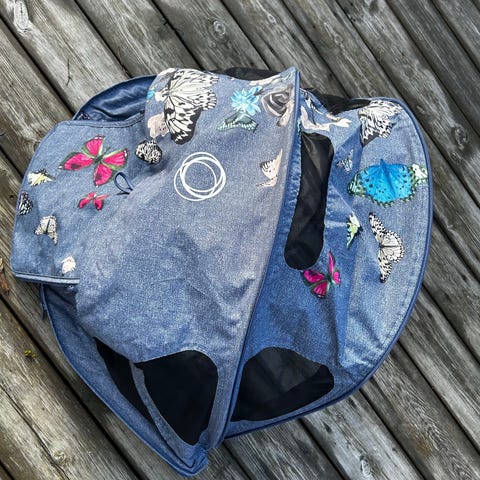 Hopfällbar och tar minimalt med plats. Har förvarats inomhus inget mögel eller liknandet