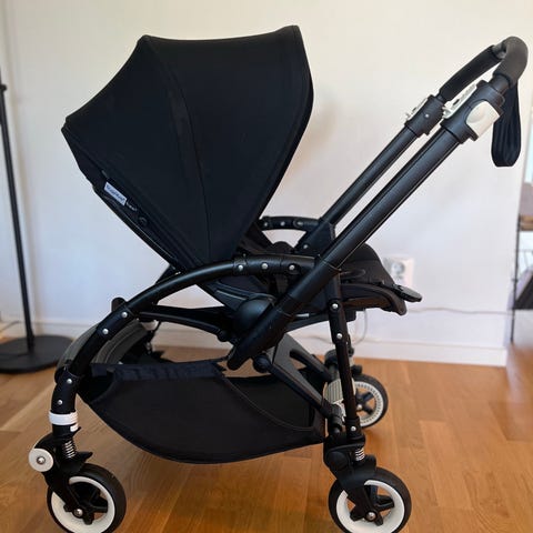 Bugaboo gjorde ett coolt samarbete med diesel 2016z Bugaboo barnvagn i svart utförande med dekorativa nitar på suffletten. Vagnen har sittdel med fempunktssele och fotstöd. Under vagnen finns en varukorg för förvaring. Plasten på fotbromsen är trasigt, Obs påverkar inte funktionen bromsen funkar som den ska .