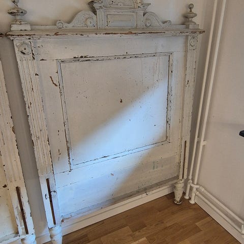 Har använts som sänggavel med egentillverkade ben 123 cm. Går såklart att fixa till själv.