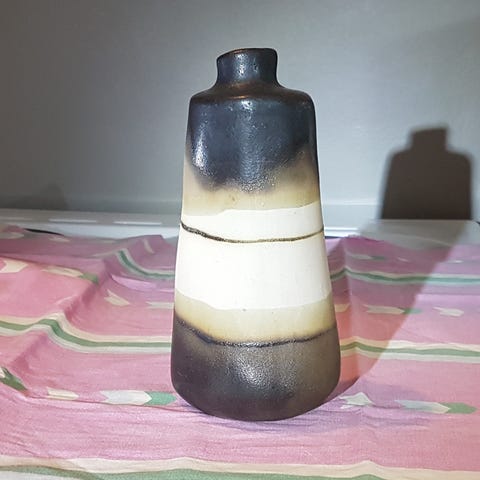 Vas av Hans Hedberg s k tryffelvas. Gul glasyr som är beigespräcklig. Höjd 21 cm. Signerad enl bild.