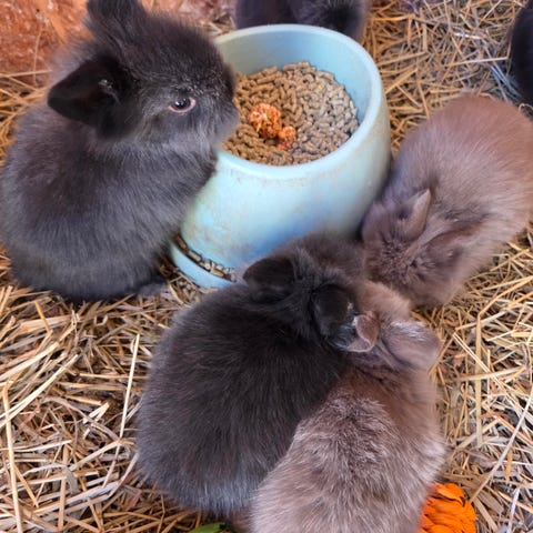 Våra kaniner Lakrits och Pepsi fick 6 st gulliga dvärgvädurar.