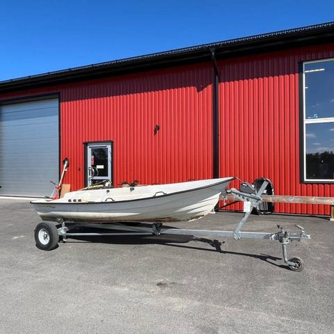 Bra båt med, riktig köl. Längd 4.40 m Bredd 1.70 m. Ny vinch på trailern ,åror medföljer båten.