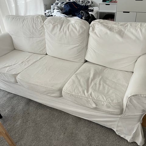Vi säljer nu vår hörnsoffa vi köpte ny 2017. Den är i bra skick (hel och ren).