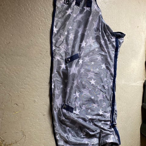 Fleecetäcke med fast hals Horse Saver. Stängning vid halsen. Lite svårt att tyda stl vad som står på lappen men tror 185cm. Mått finns dock på bilder. Har använts på mindre häst, funkat bra det också tycker vi.
